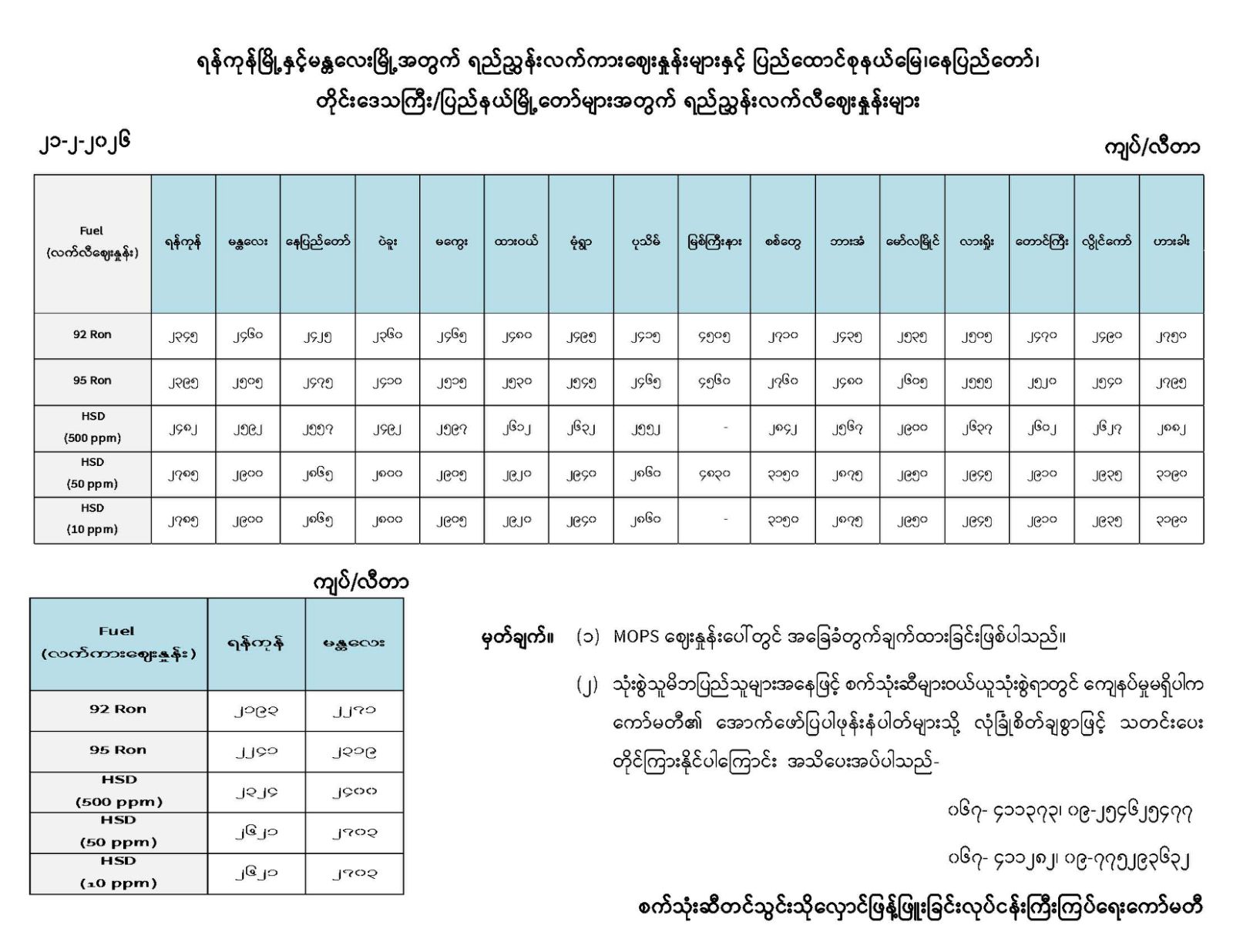 Fuel Price : ၁၇-၂-၂၀၂၆ ရက်နေ့ ရည်ညွှန်းစက်သုံးဆီစျေးနှုန်းများ [. . .]
